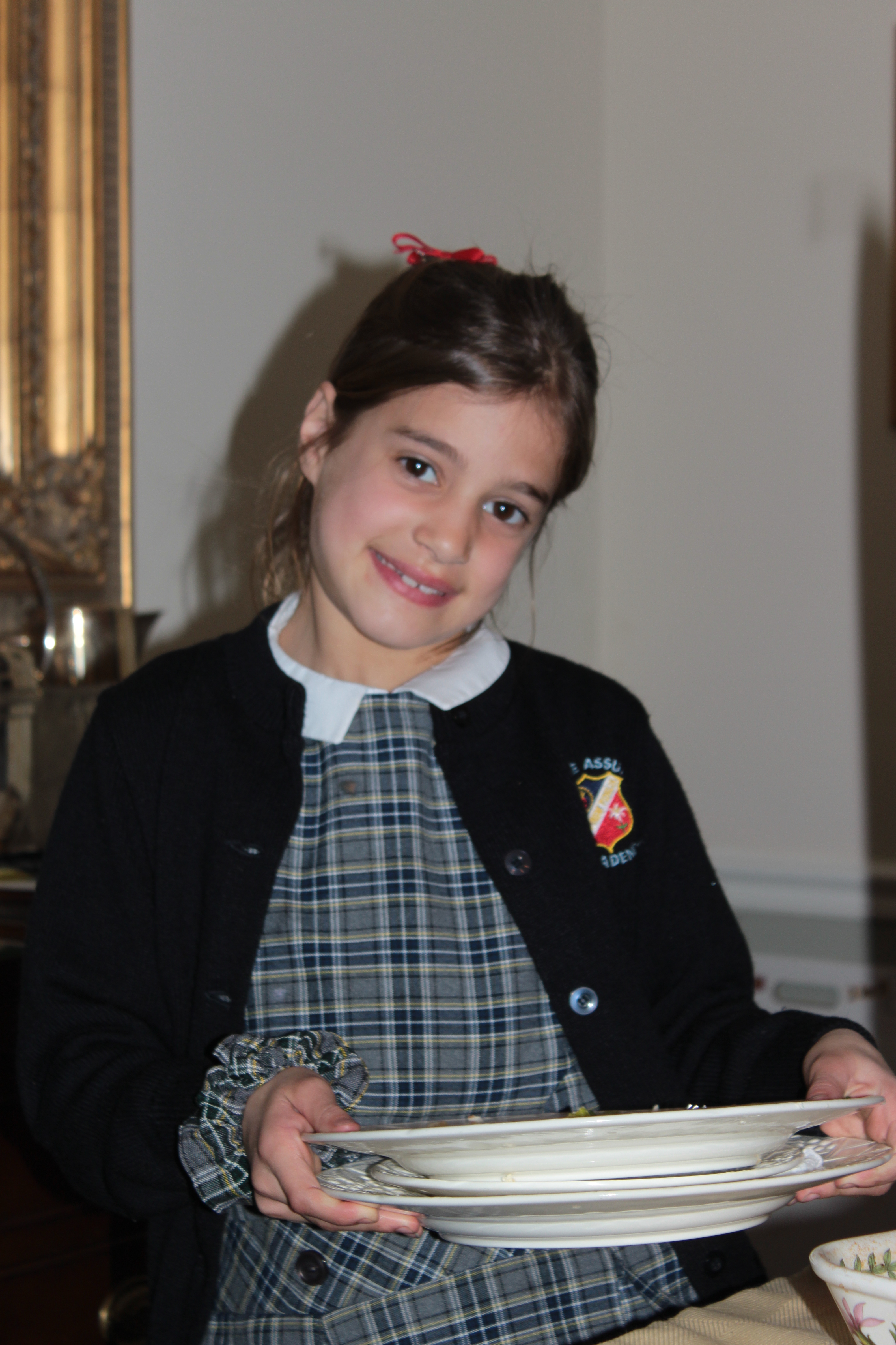 Note:  We went to the California Grill at the top of the Contemporary Hotel at Disney.  The chef is known as the best female sushi chef in the country and the food is fabulous!  Even better, the kids could order off the adult menu as part of the Deluxe food plan.  Mia ordered the california roll and sea bass and Mac ate the tuna roll and ravioli with goat cheese….not bad.   Too bad they also eat adult deserts!