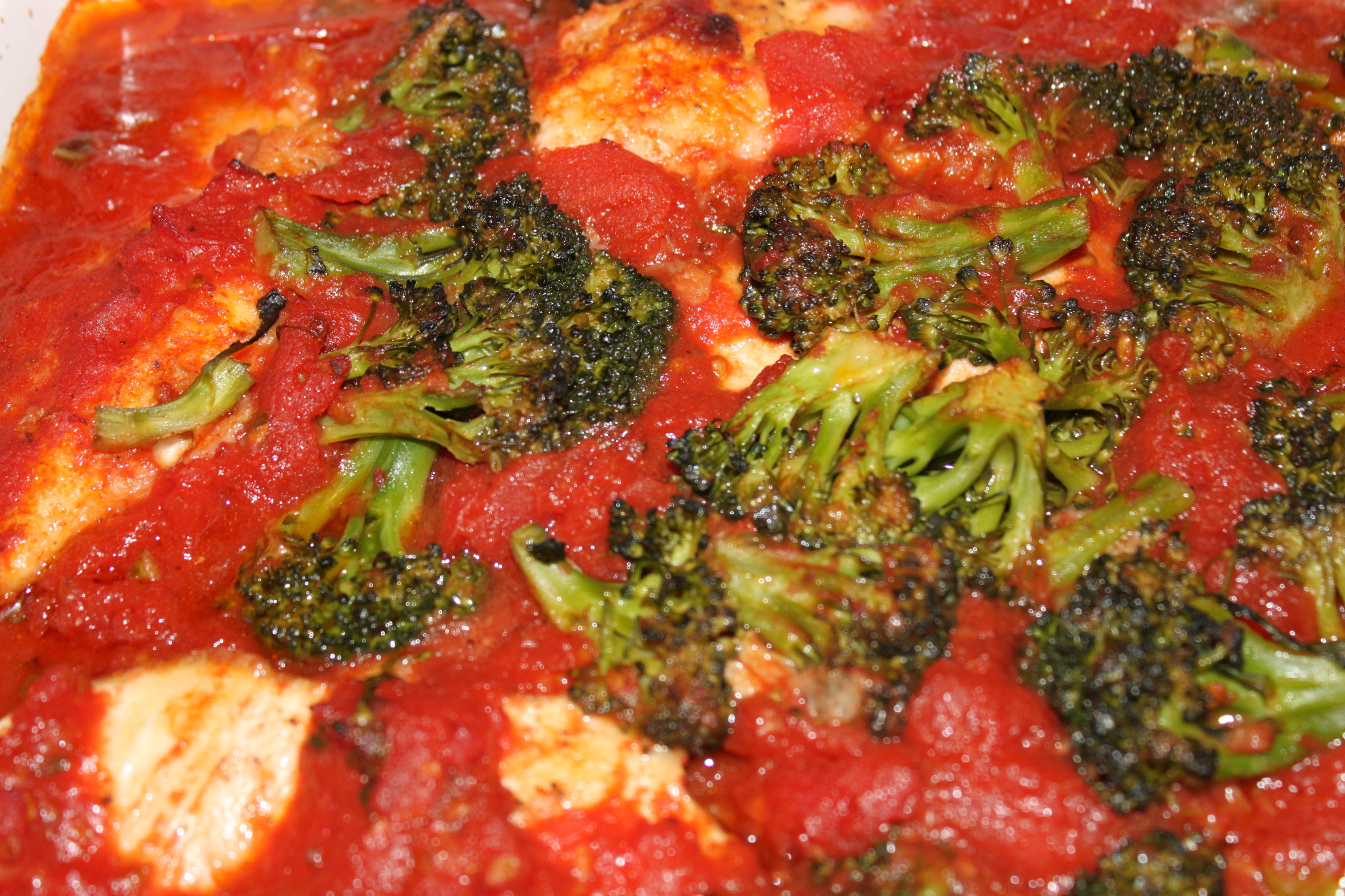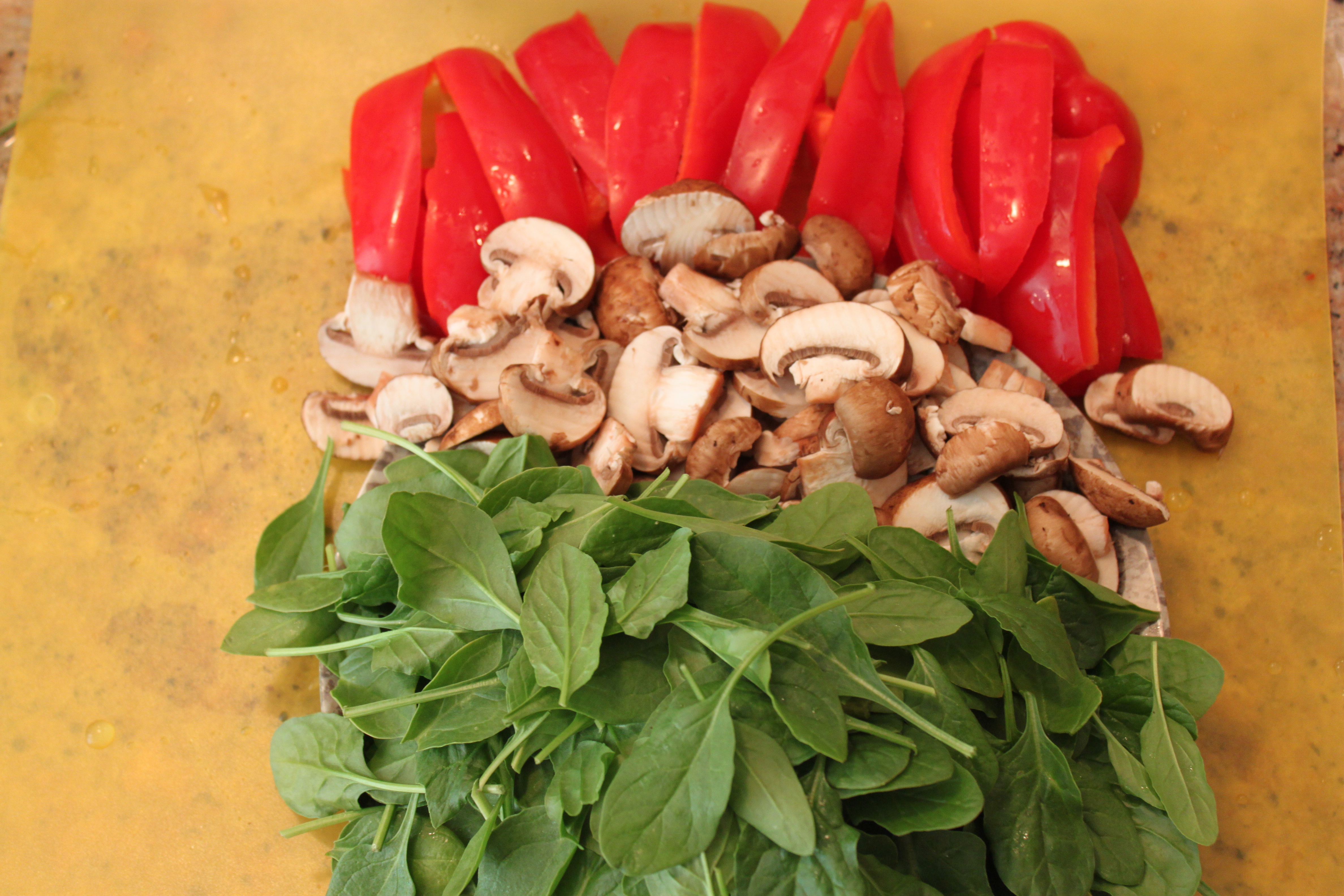 I always try to use up everything in my fridge on Thursday nights. I lay it all out on the counter and start thinking. Tonight I had 1 red pepper, 1 head of broccoli, some chicken breasts and a few mushrooms. Any veggies will do and you can make this without the chicken. Here’s what I whipped up: