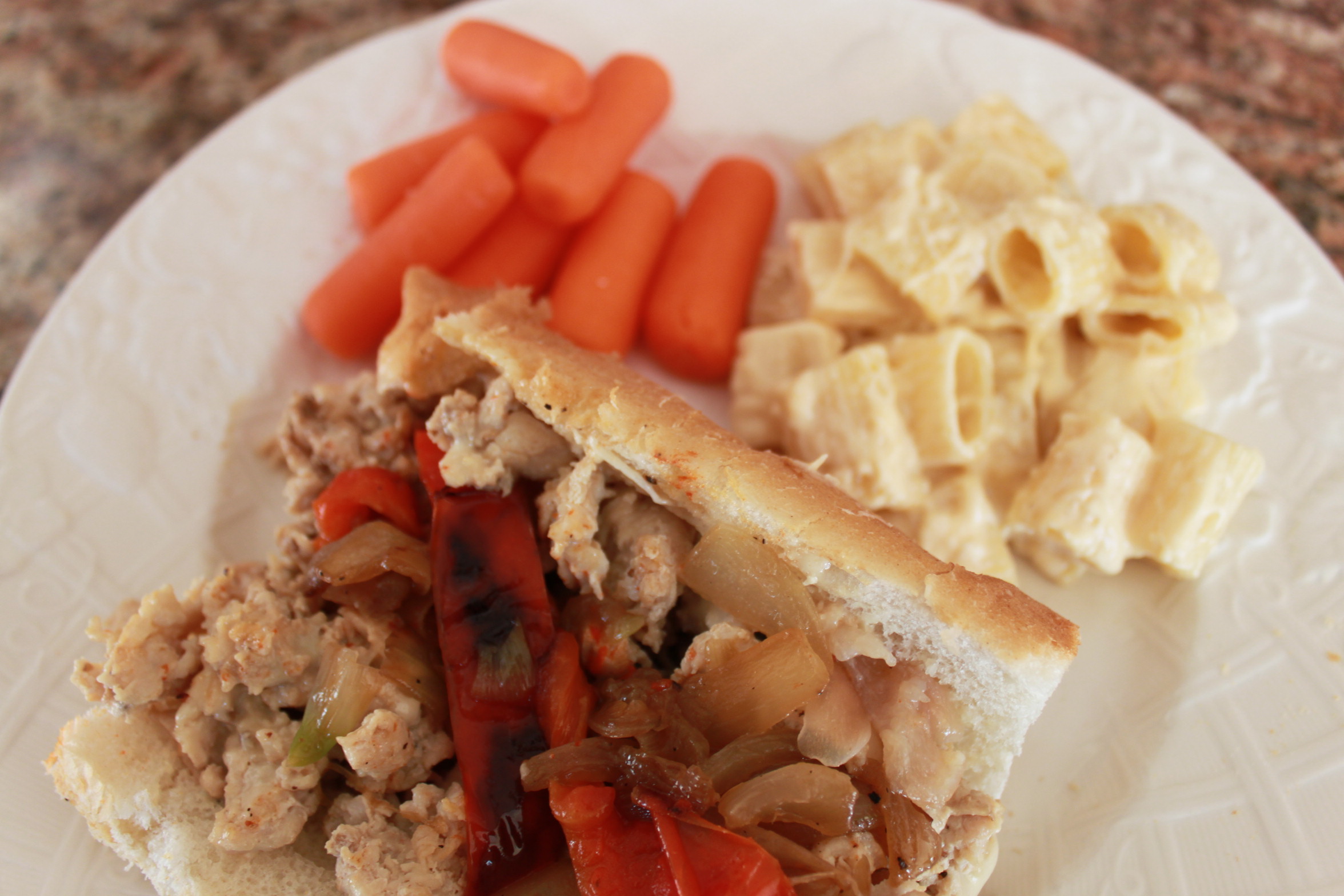 This is another version of my fast food before practice. Check with your local italian market (I like Sam’s) for frozen chicken and “chip-steak” meat for Cheese Steaks. You can cook them frozen. The meat is simply cut paper-thin and cooks quickly. Grab some long italian rolls, or keep some in the freezer for a last-minute meal. It’s almost like being at Tony Lukes!