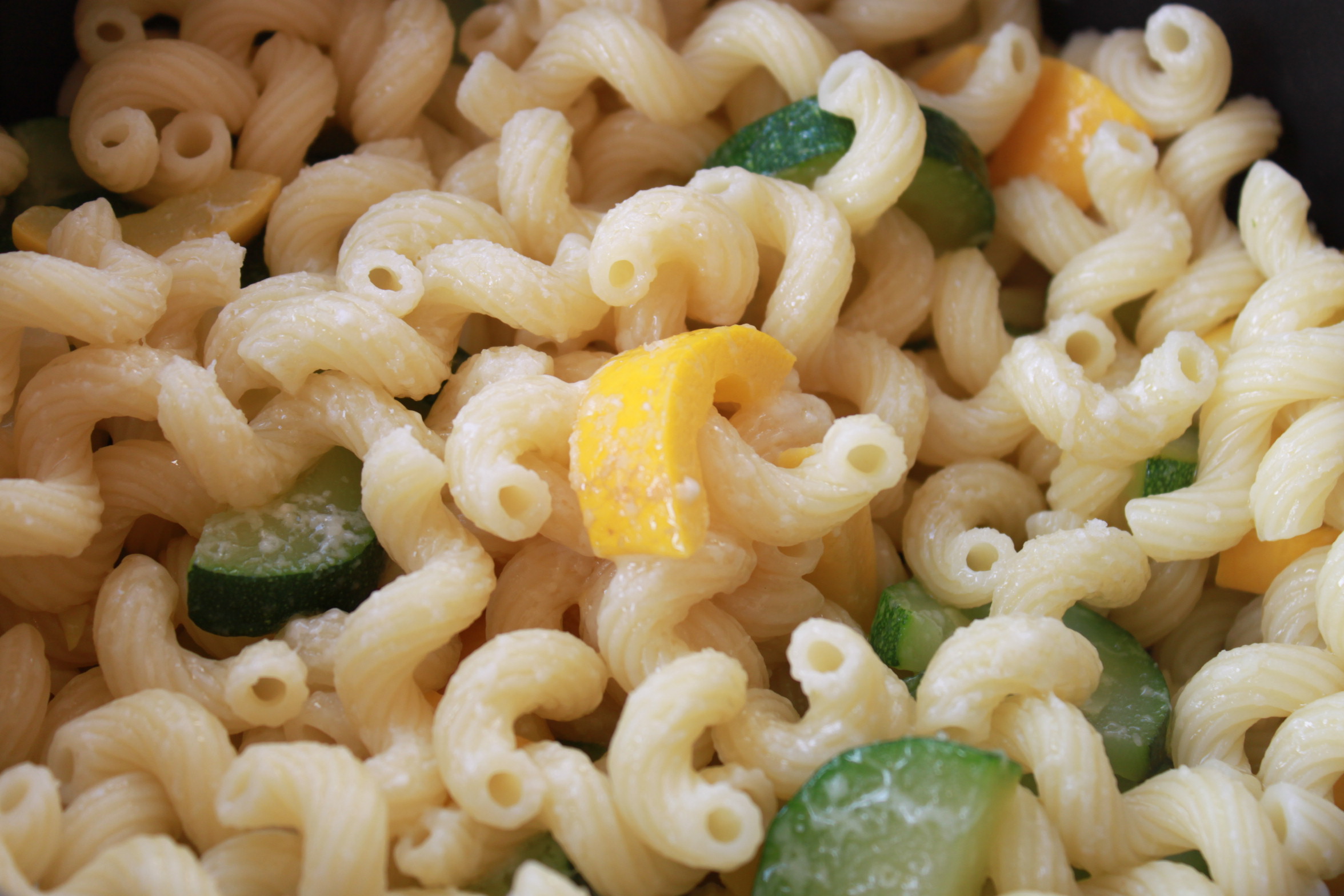 - Add pasta into the veggies and toss with a dash of salt/pepper and some parsley.