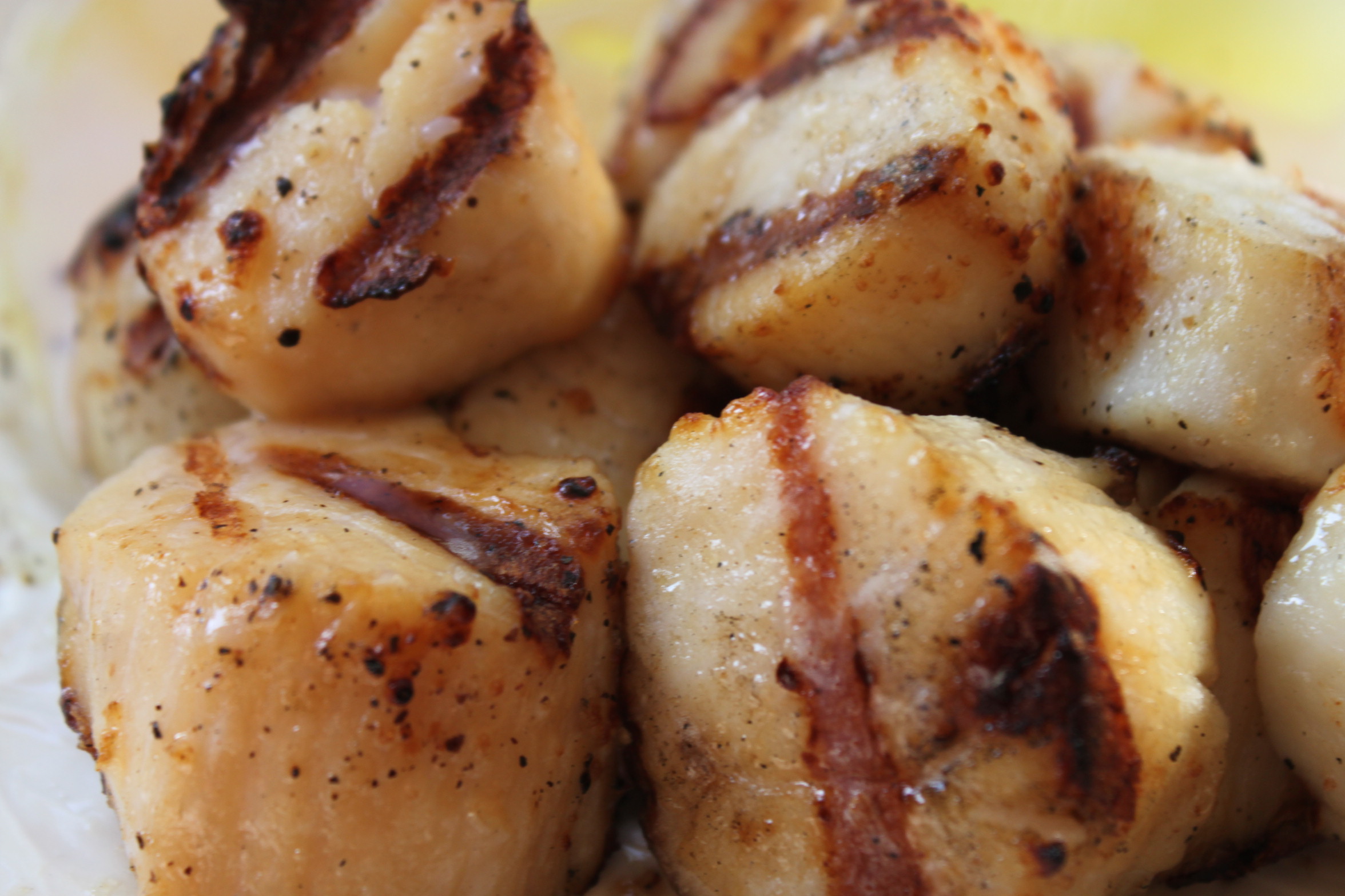 - Pat dry scallops. Drizzle olive oil, salt and pepper on both sides.