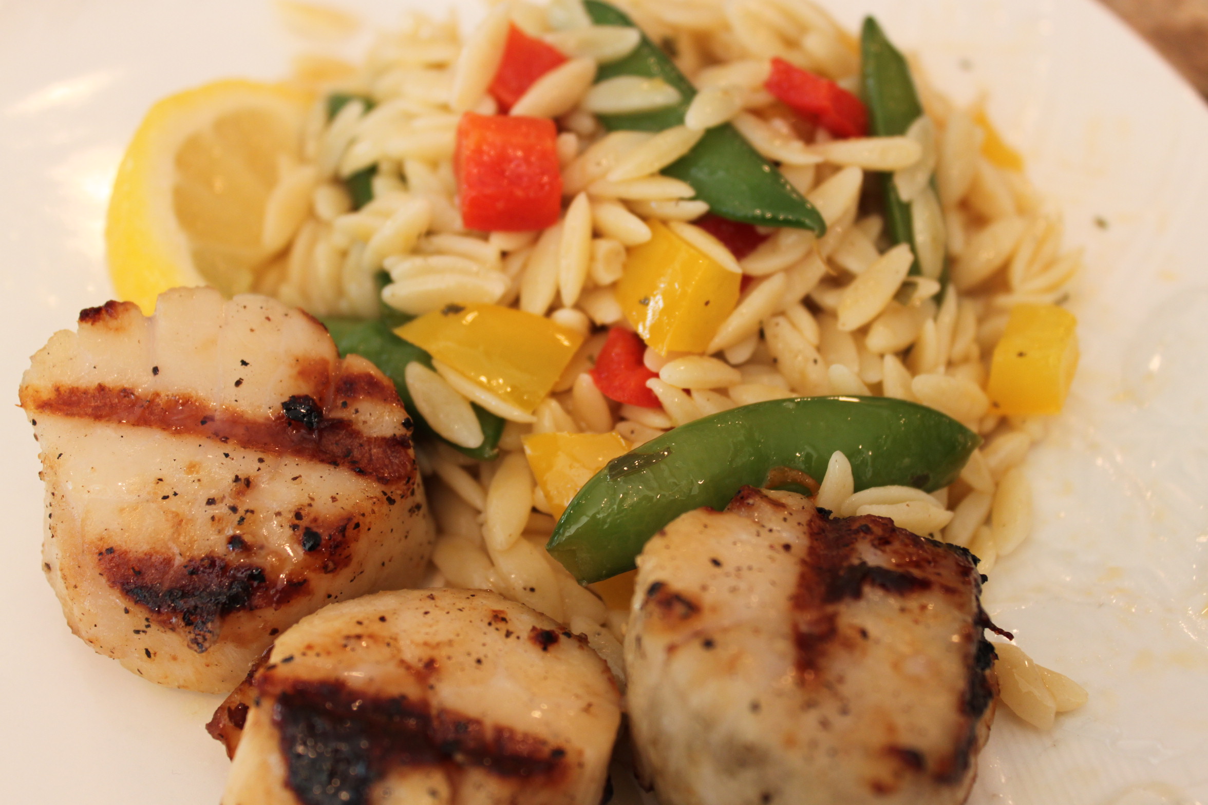 - Pat the scallops with a paper towel and help you sprinkle EVOO and salt/pepper on them.